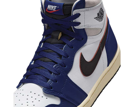 Scarpe da ginnastica alte retrò in pelle con colori ispirati al basket.