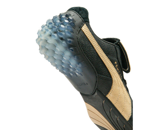 Scarpa sportiva in pelle nera e marrone chiaro con design elegante